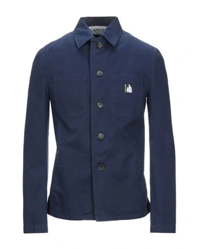 LANVIN Jackets. twill, logo, solid color, single-breasted, button closing, classic neckline, multipockets, long sleeves, unlined. 100% Cotton