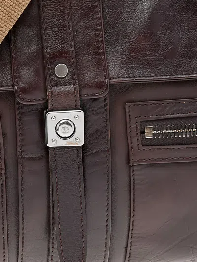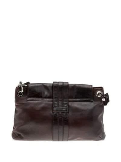 brown construction zip pockets detail silver-tone hardware central clasp closure adjustable shoulder strap Condition: GOOD. This previously owned and used item is in good condition with minimal signs of use. This may include fading of material or plating and scratches.