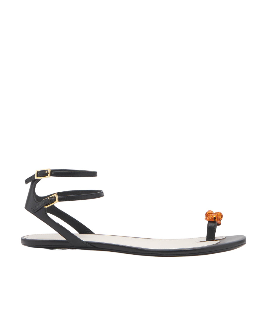 Logo flat sandals, sandals with ankle straps and two adjustable clasps, knot decoration details