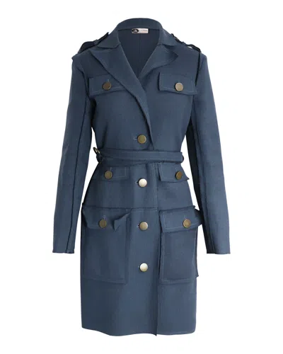 LANVIN Multi-pocket Belted Coat In Blue Wool