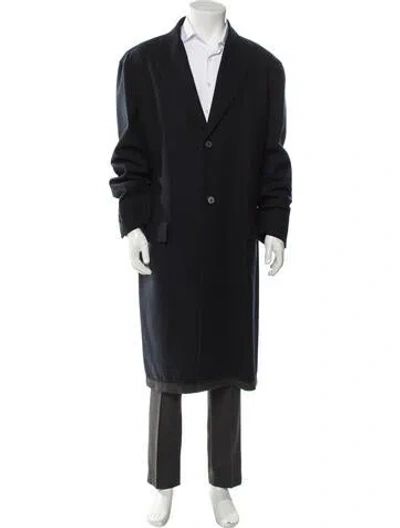 Lanvin Overcoat Black Satin Lining Collar Flap Pockets Fit: Outerwear by Lanvin typically fits small, consider taking a size up. | Lanvin Overcoat in Black, Men's 3XL