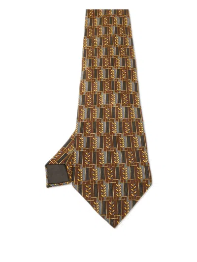 Pre-owned Patterned Silk Tie In Brown