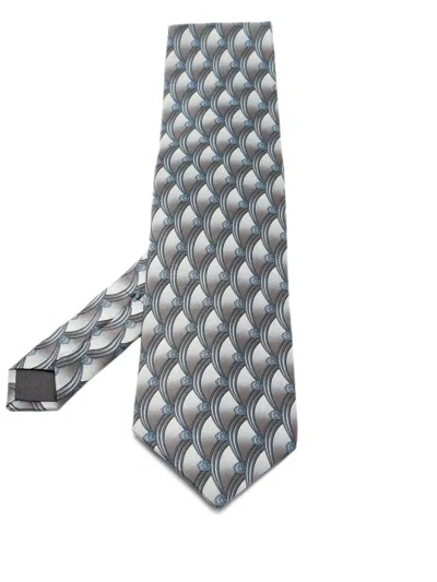 medium grey silk geometric-pattern print pointed tip self-tie fastening full lining Condition: GOOD. This previously owned and used item is in good condition with minimal signs of use. This may include fading of material or plating and scratches.