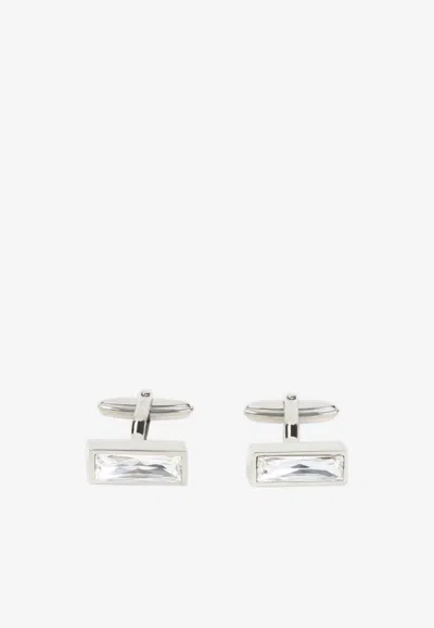 LANVIN Rectangular Cubic Strass Cufflinks In Silver