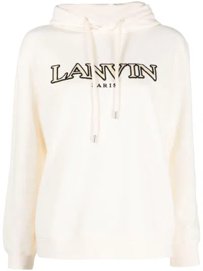 embroidered-logo cotton hoodie from Lanvin featuring cream white, cotton, embroidered logo to the front, drawstring hood, drop shoulder, long sleeves, ribbed trim and straight hem.