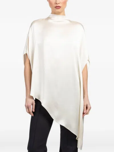 LAPOINTE Asymmetric-hem Cape Blouse In White