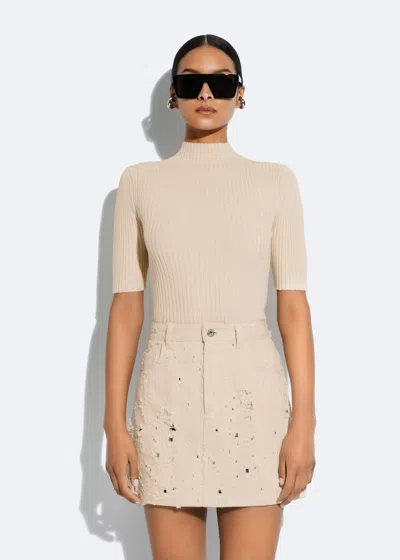 Featured in the Pre-Fall 24 Collection Cotton Wool Short Sleeve Fitted Turtleneck Ribbed Knit Top. Material: 80% Organic Cotton, 20% Rws Merino Wool. Care: Machine Wash Cold or Dry Clean Fit: True To Size Model Is 5'10" And Wearing a S