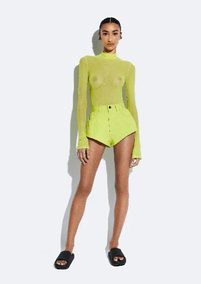 Featured In The Fall 2024 Collection This denim hot short features a five pocket detail with zip fly and button closure. Materials: 100% Cotton Care: Hand Wash Cold Fit: Slim Fit. True to Size Model is 5'10" and Wearing a 2