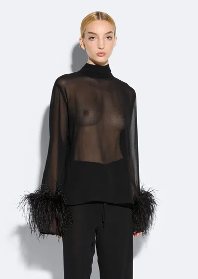 LAPOINTE Georgette Top With Feathers In Black