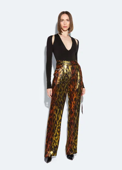 LAPOINTE Lurex Leopard Belted Pant