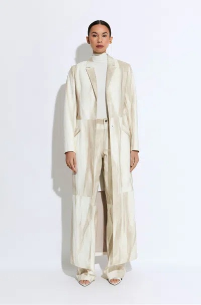 Featured In The Pre Fall 2025 Collection Full-length, marbled nappa leather coat in 100% lambskin. Features hidden button front closure, notched lapels, and welt pockets. Pair with our marbled nappa leather double seam pants for the complete look. Material: 100% Lambskin Care: Hand Wash Cold or Dry Clean Fit: True to size Model is 5'10 and Wearing a Size 2