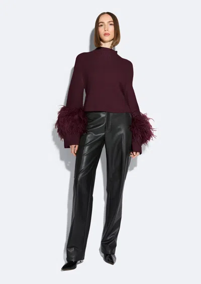 Merino Mock Neck Sweater With Feathers In Mulberry