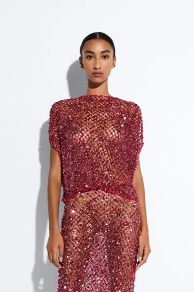 Net Mesh Sequin Cape Tee In Deep Pink