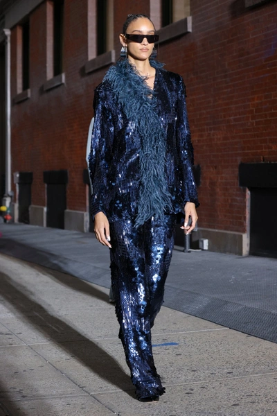 Featured in the Spring 2024 Runway Collection. . . Side Invisible Zipper. . Material: Sequin (88% Nylon, 12 % Elastane). Care: Professional Care Only. . Imported. . .