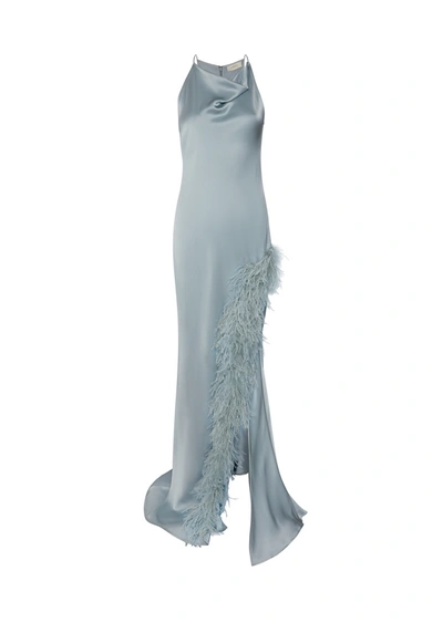 LAPOINTE Satin Halter Gown With Feathers In 10