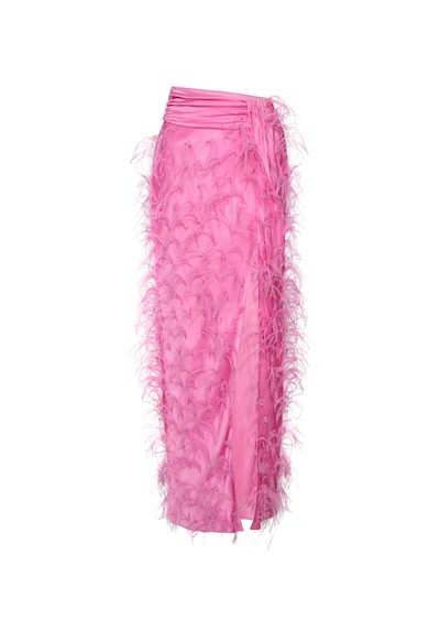 LAPOINTE Satin Maxi Skirt With Feathers In 14