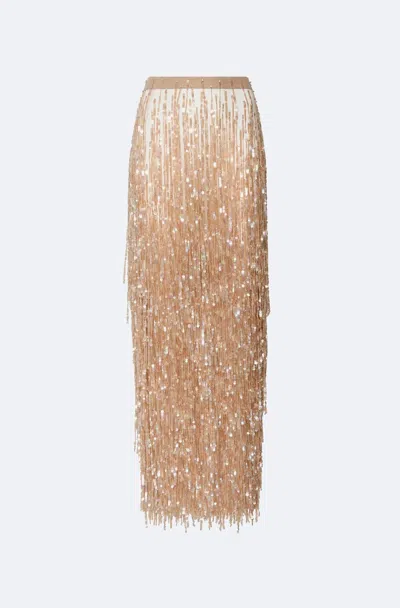Sequined-fringe Midi Skirt In Oat