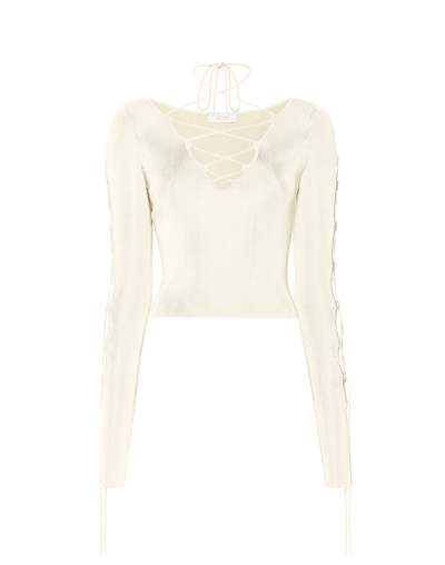 Shiny Viscose Longsleeve Lace Up Top In Cream