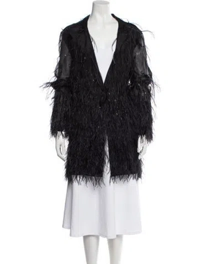LAPOINTE Silk Down Coat Black Feather Trim & Pointed Collar Knee-Length Slit Pockets Fit: Coats by LAPOINTE typically fit true to size. | LAPOINTE Silk Down Coat in Black, Women's US 14 | XL