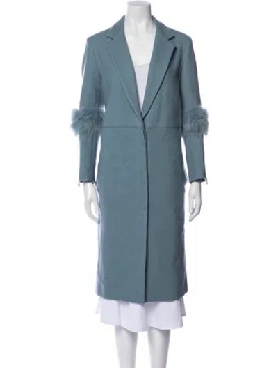 LAPOINTE Virgin Wool Coat Blue Fur Trim & Pointed Collar Long Slit Pockets & Button Closure Fit: Coats by LAPOINTE typically fit true to size. | LAPOINTE Virgin Wool Coat in Blue, Women's US 4 | S