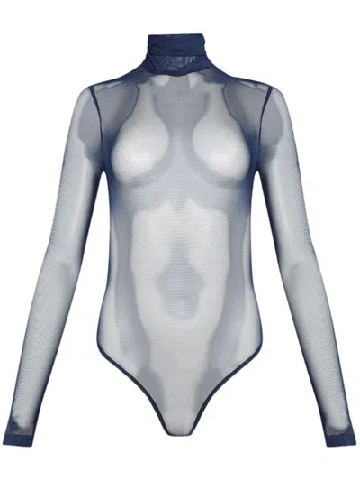 LAQUAN SMITH Open-back Mesh Bodysuit In Blue