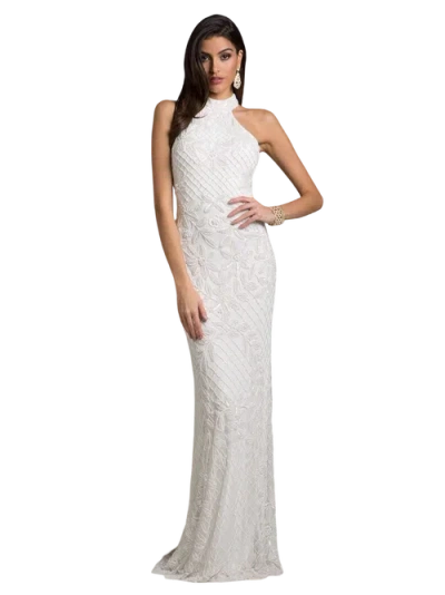 LARA NEW YORK Lattice-beaded Halter Neck Sheath Wedding Gown In White