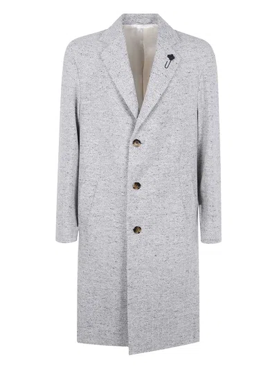 Long sleeves | Herringbone pattern | Notched lapel | Decorative pin | Button closure