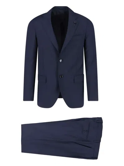 LARDINI Tailored Two-button Blazer And Slim-fit Trousers Set In Blue