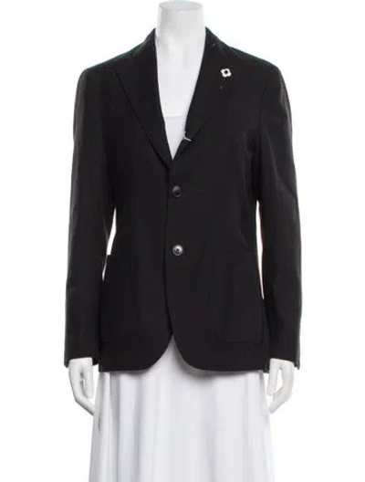Lardini Wool Blazer Black Crochet Trim & Pointed Collar Patch Pockets & Button Closure Fit: Jackets by Lardini typically fit true to size. | Lardini Wool Blazer in Black, Women's XL