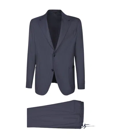 Suit by Lardini Regular fit Made of virgin wool fabric Straight two-button fastening Patch pockets on the front Pochette pocket Two interior pockets Two Back vents Back length: 74 cm Pants with a dart Pockets on the front and on the back Zip, hook and button closure Length: 120 cm You can book a private appointment with us so that we can take your measurements and can customize it for you.Made in Italia100% Virgin Wool