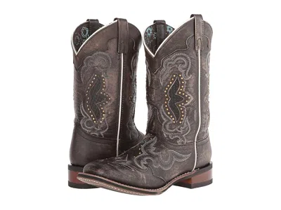 Laredo Spellbound - Cowboy Boots : Black/Tan : Spin a little Western enchantment when you wear the Laredo Spellbound boots! ; Rich leather upper with a snakeskin underlay. ; Features intricate Western stitching, brass stud accents, and contrast piping detail. ; Broad square toe design. ; Sturdily stitched pull loops for easy entry. ; Printed textile lining for both comfort and added style. ; Hinged cushion insole for excellent support and comfort. ; Stockman heel. ; Cowboy Approved outsole for added grip and durability. ; Imported. Measurements: ; Heel Height: 1 1 4 in ; Weight: 1 lb 5 oz ; Circumference: 14 in ; Shaft: 11 in ; Product measurements were taken using size 8, width B - Medium. Please note that measurements may vary by size. | Laredo Spellbound Cowboy Women's Boots Black/Tan : 9.5 B - Medium, Leather