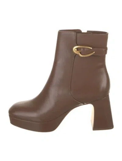Larroude Leather Ankle Boots Brown Square-Toes Platform Includes Dust Bag Unfortunately, due to restrictions, this item may not be eligible for shipping in all areas. | Larroude Leather Boots in Brown, Women's 9