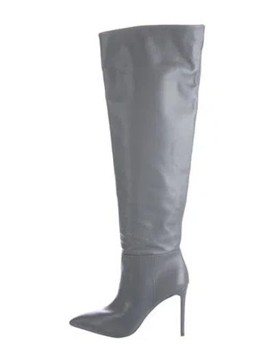 Larroude Leather Over-The-Knee Boots Grey Pointed-Toes Unfortunately, due to restrictions, this item may not be eligible for shipping in all areas. | Larroude Leather Boots in Grey, Women's 8
