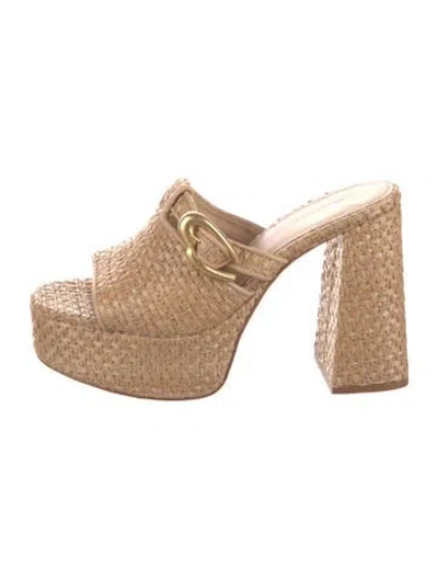 Pre-owned Raffia Slides In Neutral