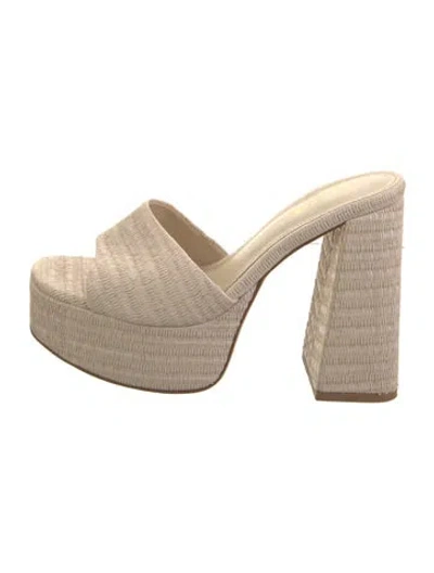Larroude Raffia Slides Neutrals Platform Includes Dust Bag | Larroude Raffia Slides in Neutrals, Women's 7.5