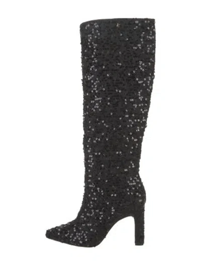Larroude Tweed Knee-High Boots Black Patterned Pointed-Toes with Sequin Embellishments | Larroude Tweed Patterned Boots in Black, Women's 8