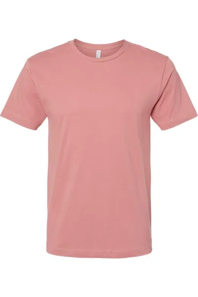 4.5 oz./yd, 100% combed ringspun cotton fine jersey, 30 singles. Ash is 99/1 combed ringspun cotton/polyester. Heather is 90/10 combed ringspun cotton/polyester. Bermuda Black, Black Leopard, Blended Black, Blended White, Cardinal Blackout, Granite Heather, Ice Blackout, Sangria Blackout, Storm Camo, Surf Blackout, All Vintage Colors & Wisteria Blackout are 60/40 combed ringspun cotton/polyester. Ash and White are sewn with 100% cotton thread. Topstitched ribbed knit collar. Shoulder-to-shoulder self-fabric back neck tape. Double needle sleeves and bottom hem. Side seams. EasyTear label.