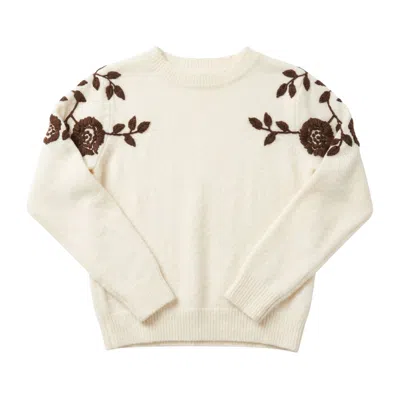 Women's White Hand-embroidered Knit Jumper In Soft Neutral