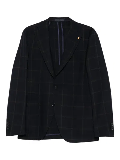 navy blue check pattern button fastening notched lapels long sleeve button cuffs