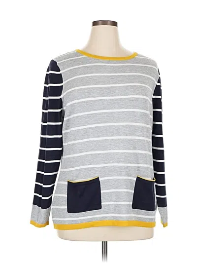 Laura Ashley Pullover Sweater, Size: 14. Item Details: Gray, Stripes Pattern, Crew Neck, Long Sleeve, Women's Tops, Viscose/Nylon/Polyester