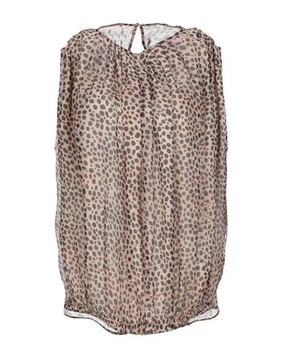 chiffon, folds, animal print, rear closure, button closing, short sleeves, round collar, no pockets, with elastic bottom, large sized , Color: Sand , Size: 8