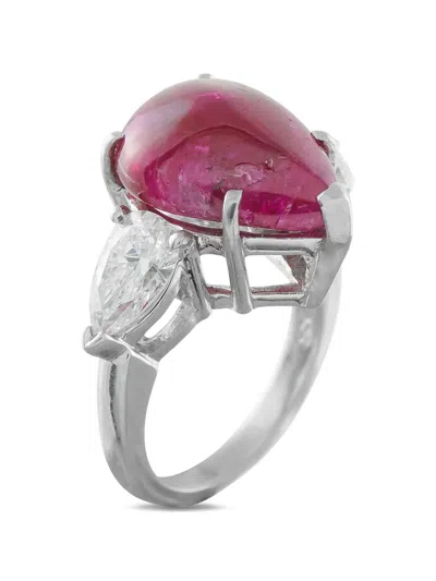 Pre-owned Diamond And Ruby Ring In Silver