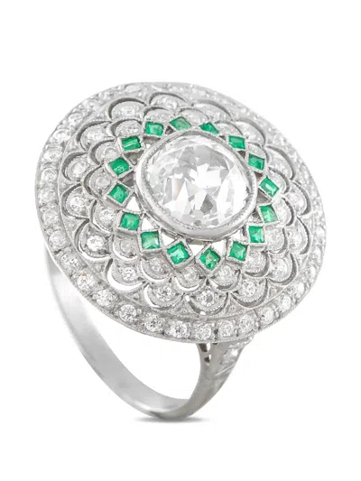 Pre-owned Diamond Emerald Ring In Silver