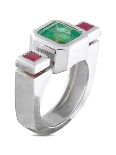 Pre-owned Emerald And Ruby Ring In Silver