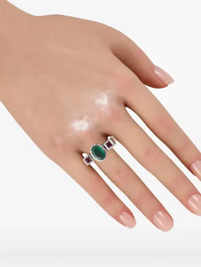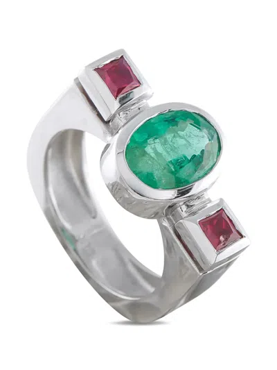 Pre-owned Emerald And Ruby Ring In Silver