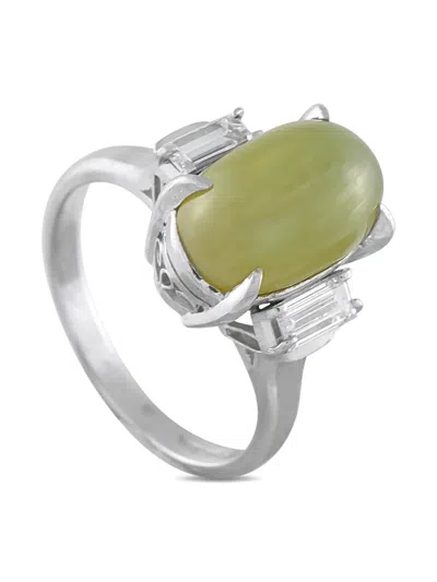 Pre-owned Platinum Cat's Eye And Diamond Ring In Silver
