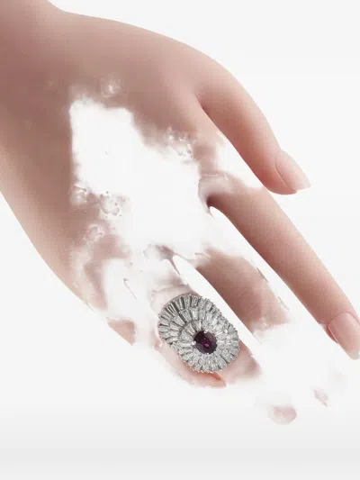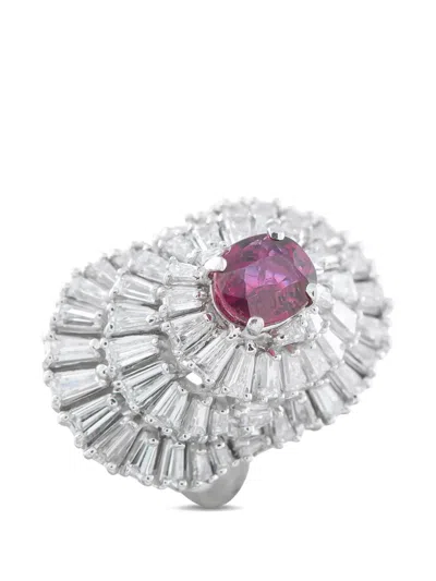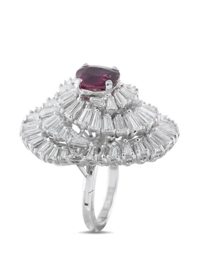 Pre-owned Ruby And Diamond Platinum Ring In Silver