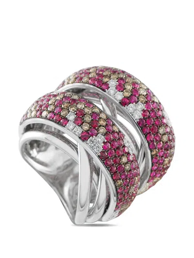 18K white gold ruby diamond double band irregular gem setting polished finish Condition: EXCELLENT. This previously owned item is in near-perfect condition with no signs of damage or use.