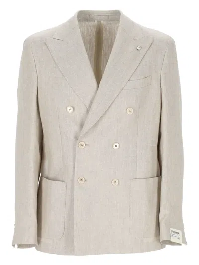 L.B.M 1911 Double-breasted Linen Blazer In Neutral