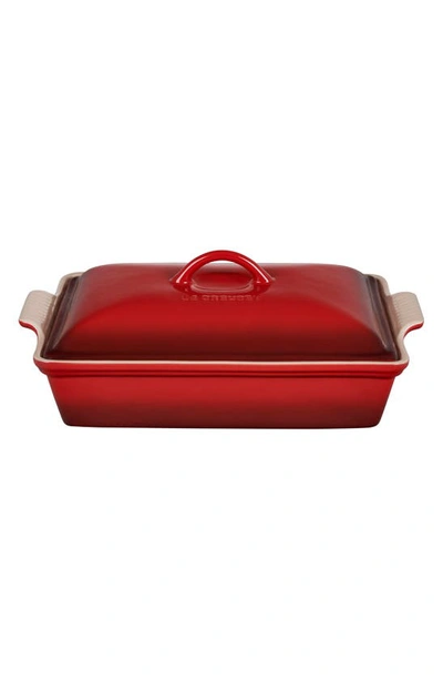 About The Brand: Colorful, Collectible, Cast-Iron Favorites. Color/Finish: Cerise The Heritage Stoneware Rectangular Dish Is A Smart Solution For A Variety Of Recipes As Well As Common Kitchen Tasks Like Marinating And Breading. Its Deep Sidewalls Create Ample Cooking Space For Casserole Fillings While Its Stoneware Construction Maintains Proper Hot And Cold Temperatures For Dishes Prior To Serving And During Meals. Perfect For 4 Servings. Stoneware Maintains Even Temperatures And Prevents Scorching; Unmatched Thermal Resistance; Safe For Freezer Microwave Oven Broiler And Dishwasher; Dense Stoneware Blocks Moisture Absorption To Prevent Cracking Crazing And Rippling; Impermeable Exterior Enamel Resists Scratches And Stains And Is Safe For Cutting On With Knives; Nearly-Nonstick Glazed Interior Easily Releases Foods For Quick Cleanup Measures 9.75In Long X 15In Wide X 3.5In High 4Qt Capacity Handcrafted Made Of Stoneware Dishwasher Safe Imported The Account Credit Is Not Valid For Prior Purchases Or Balances And Must Be Used Within Sixty (60) Calendar Days After The Account Credit Is Deposited Into Your Account (The Account Credit Period). Upon Expiration Of The Applicable Account Credit Period Any Unused Account Credit Will Automatically Expire.